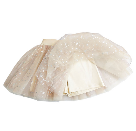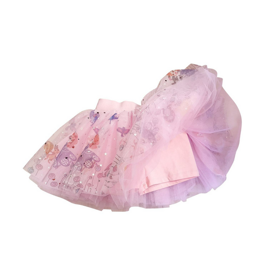 Summer style skorties with tulle skirt and 100% cotton shorts.